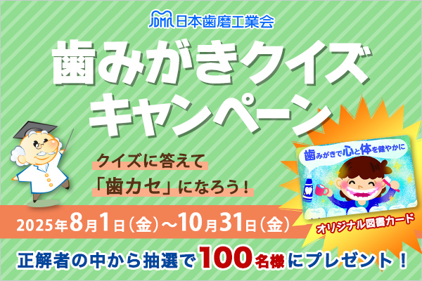 サンギが所属する日本歯磨工業会が“歯みがきクイズキャンペーン”を開催。歯みがきに関する5問のクイズに答えて全問正解者の中から抽選で100名様に図書券(500円分)をプレゼント。全問正解するまで何度でも挑戦でき、答えながら歯みがきに詳しくなれます。