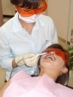 ブリーチングと呼ばれています。ブリーチングに使用する薬剤は、主に過酸化水素や過酸化尿素という物質で、歯に付着した汚れなどを分解することによって歯が白くなります。歯科医院内で行うオフィスブリーチングでは短期間、少数回で効果が現れるように比較的濃度の高い薬剤を歯面に塗布します。